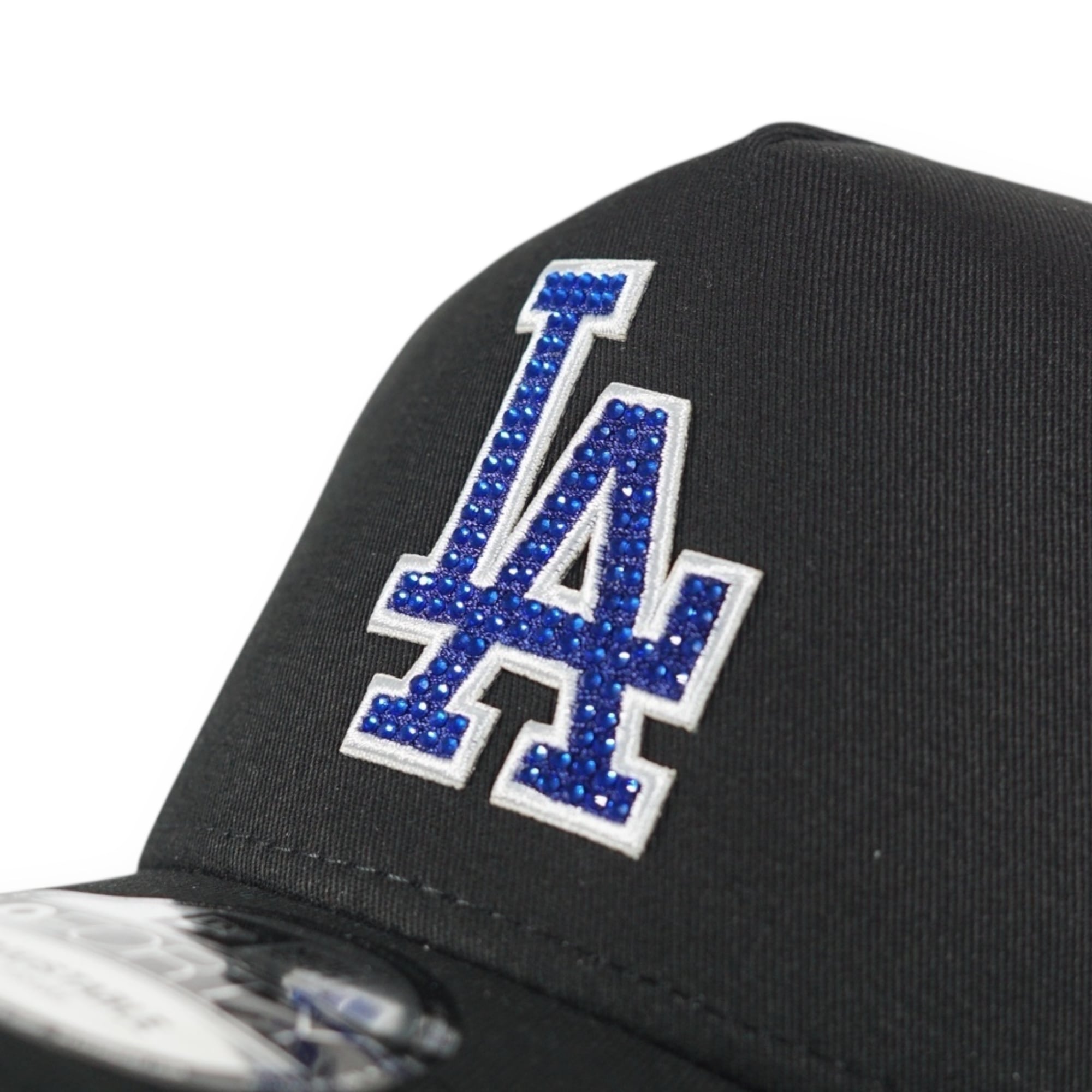 DodgersのLAロゴをブルーのラインストーンでデザインしたキャップ