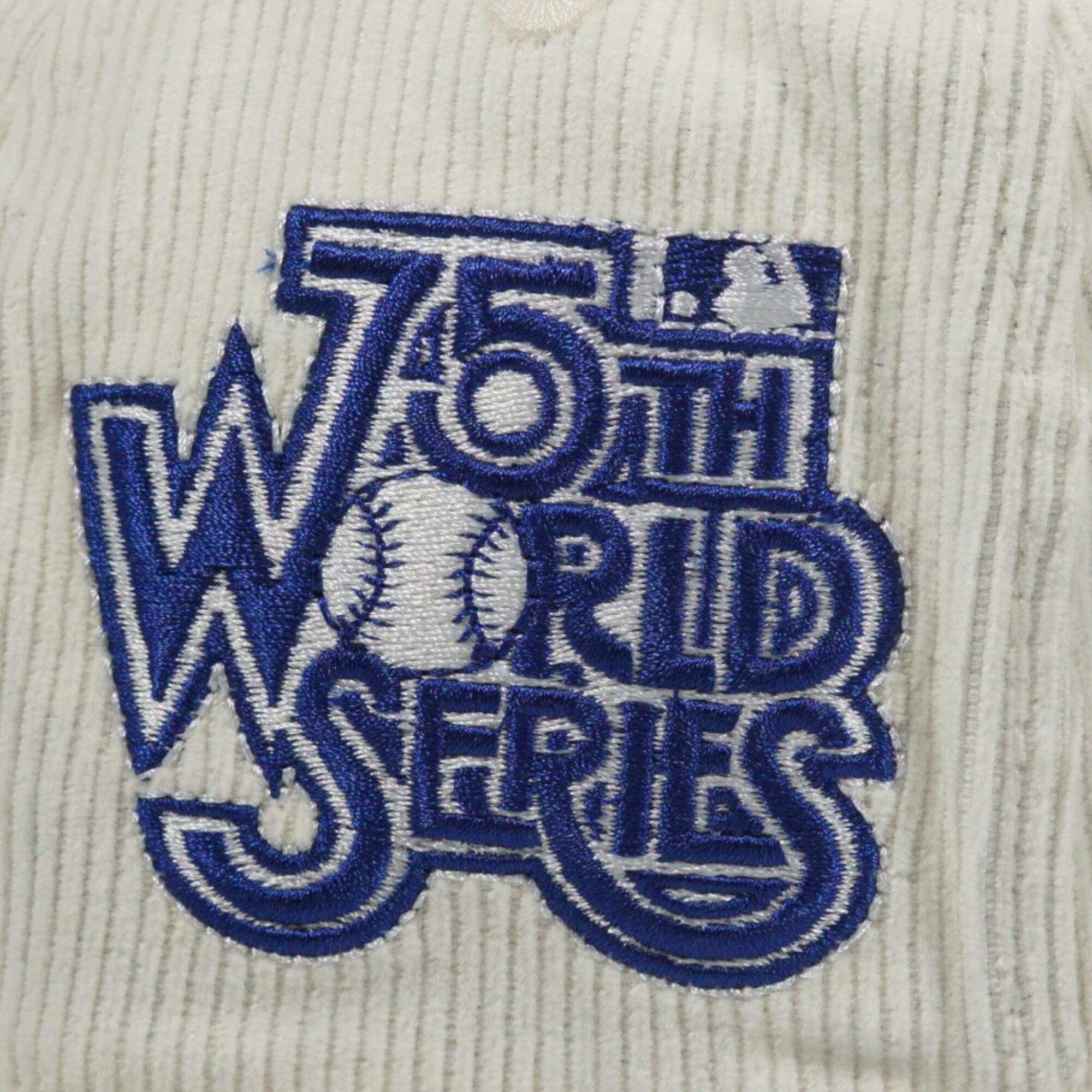 サイドに75周年ワールドシリーズパッチロゴを施した75周年記念デザインキャップ